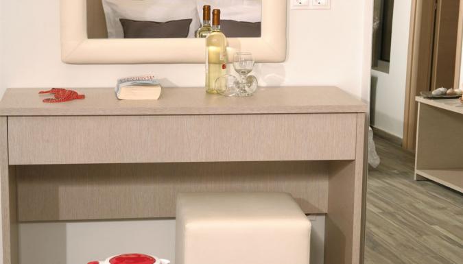 Deluxe Studio Новые просторные студио, изысканный дизайн, полностью оборудованная кухня, двуспальная кровать и двуспальный диван-кровать, телевизор Плазма (32’’), ванная комната (общий вход к раковине, слева душевая с дверью, справа WC с отдельной дверью).