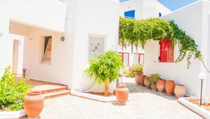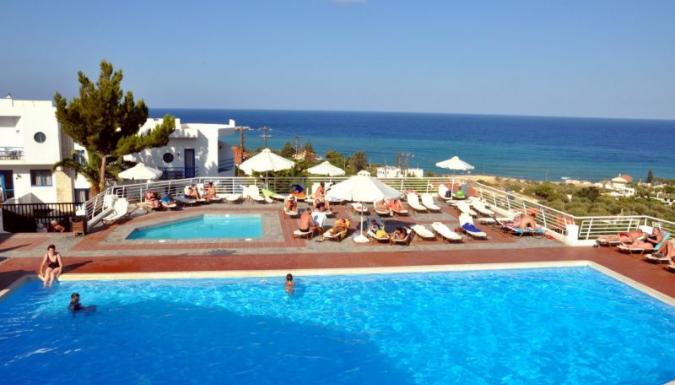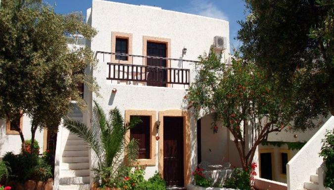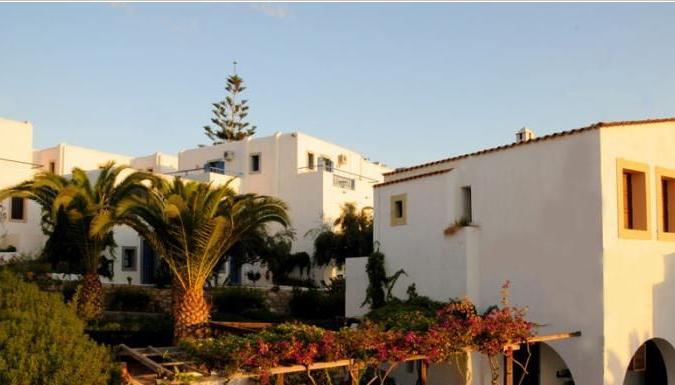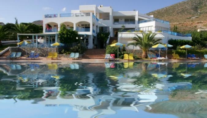 Отель построен на склоне холма, откуда открывается восхитительный и захватывающий вид на залив. Здание оформлено в традиционном критском стиле и состоит из нескольких маленьких белых бунгало, каменных аллей и красочных садов.
