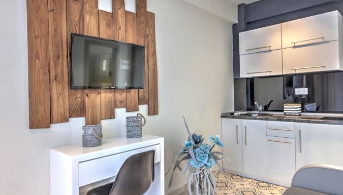 оборудованная кухня (2 керамических конфорки, электрочайник, посуда), кондиционер, телевизор LCD, спутниковое телевидение, российские каналы, телефон, сейф, холодильник/мини-бар (за доплату), телефон, бесплатный Wi-Fi интернет, душевая, банный набор, фен, детская кроватка (по запросу, бесплатно), утюг, балкон/веранда.