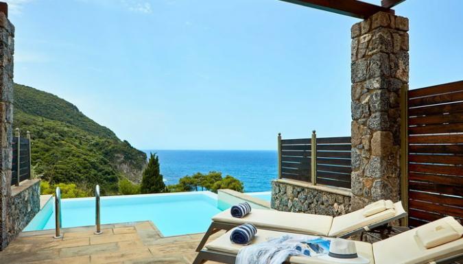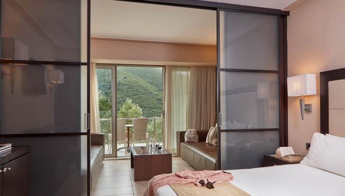 Отель Atlantica Grand Mediterraneo Resort & Spa расположился на склоне гор Эрмонес, утопающих в роскошной зелени сосен, эвкалиптов и кипарисов, территория его плавно спускается к теплым лазурным водам Адриатического моря.
