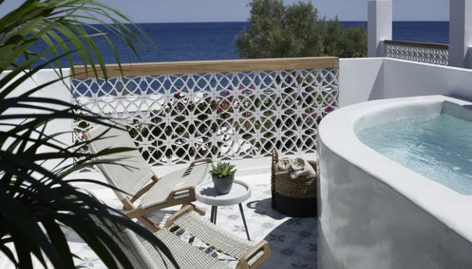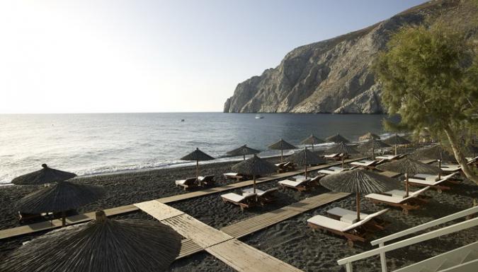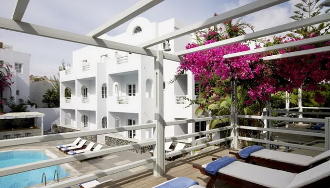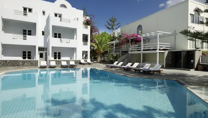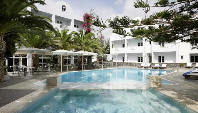Отель расположен на пляже Камари, на острове Санторини, в центре курортной зоны, в 100 метрах от автобусной остановки