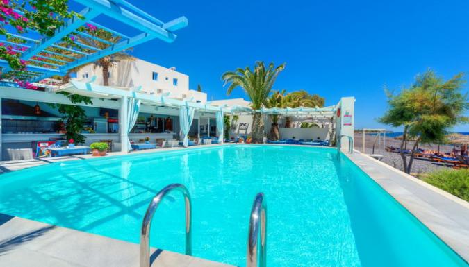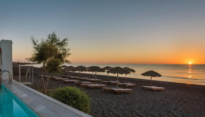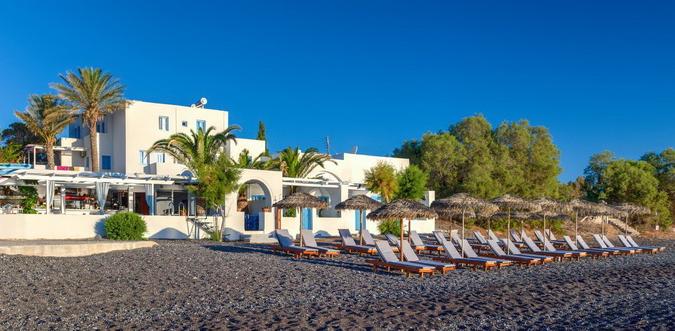 До пляжа можно дойти всего за 1 минуту. Отель Sigalas, построенный в кикладском стиле, расположен на знаменитом черном песчаном пляже в Камари