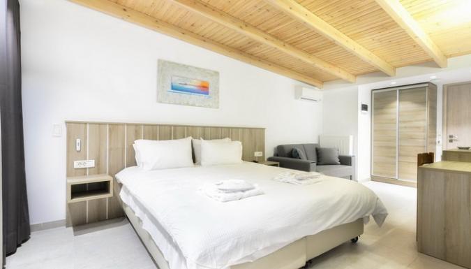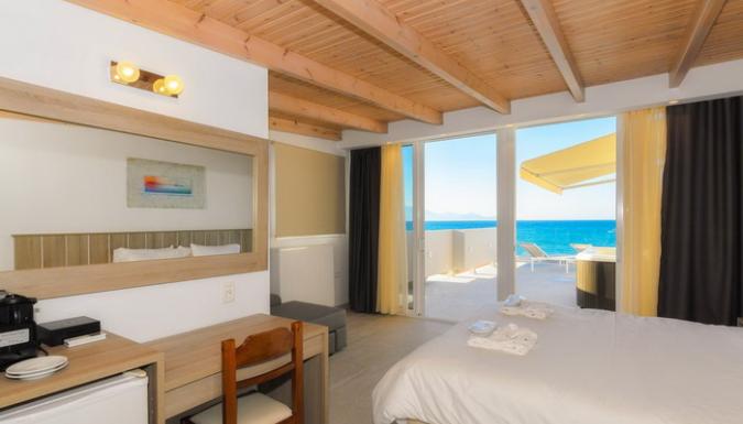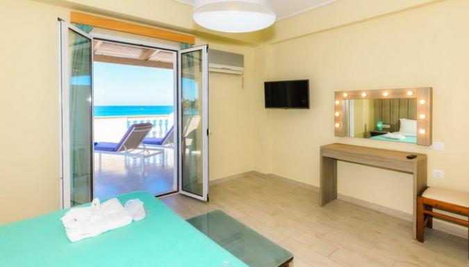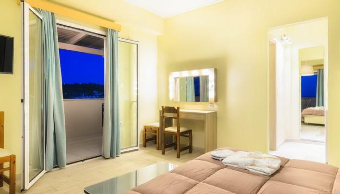 Номера и люксы отеля Iakinthos располагают собственным балконом с прекрасным видом на море, а также кондиционером, мини-холодильником, телевизором и сейфом