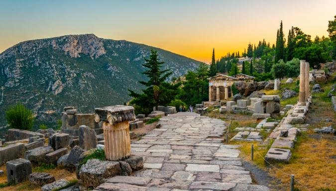 Утром переезд (~350 км) в Дельфы. Посещение археологического комплекса святилища Аполлона в Дельфах (включая входные билеты) (ЮНЕСКО): Священная площадь, храм и др.