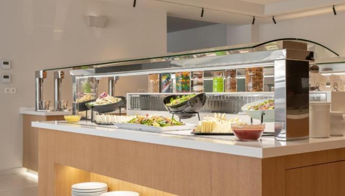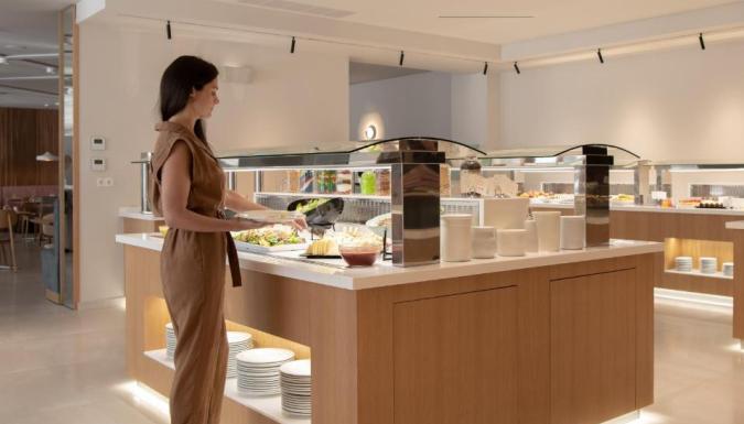 В главном ресторане Ariadne у бассейна сервируется греческий завтрак с критскими и греческими блюдами. В греческой таверне можно заказать блюда и закуски по меню и отведать их у бассейна. Помимо этого, ежедневно накрывают ужин «шведский стол» с деликатесами критской, греческой и европейской кухни. В баре Nine Muses подают коктейли и другие напитки.