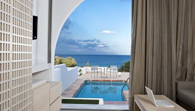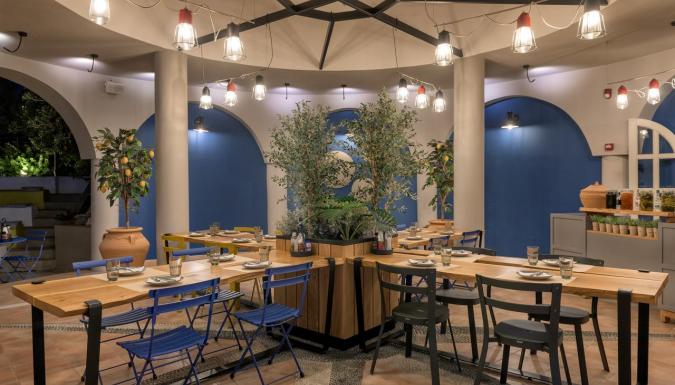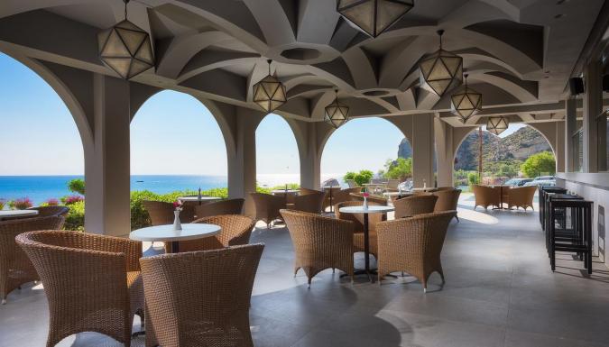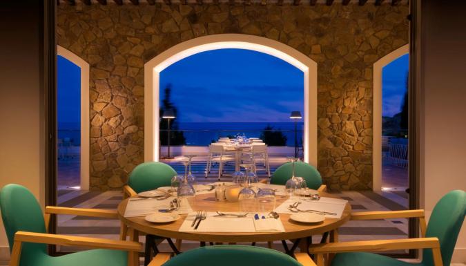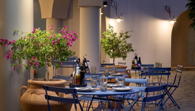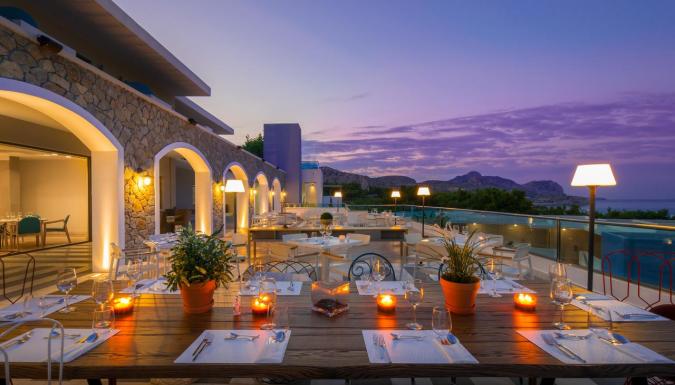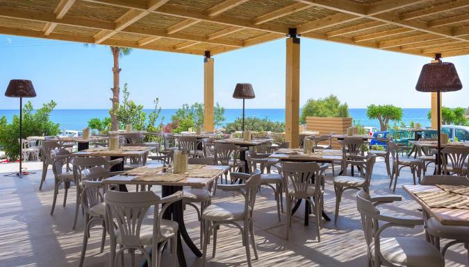 Завтрак, обед и ужин «шведский стол» подают ежедневно в главном ресторане Thalassa. Средиземноморские блюда можно отведать в ресторане Aurora с обслуживанием по меню. Гости также могут заказать полуночные закуски и местные алкогольные напитки. Два раза в неделю на территории организуется дискотека.