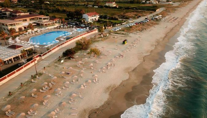 В 2 км от курортного пос. Ахарави, в 38,5 км от аэропорта и центра г. Корфу. Плоское побережье с золотым песком. 1-ая береговая линия. Выход к морю через проселочную дорогу.