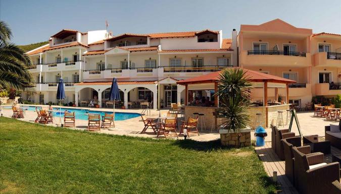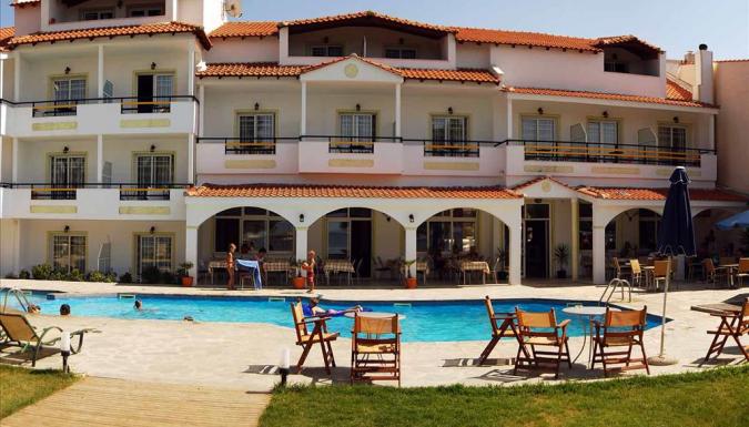 Уютный отель на берегу одного из лучших песчаных пляжей. Выбор комфортных номеров, современные удобства, 2 бассейна, ресторан, бары, бесплатный интернет, анимация. Великолепная природа, спокойная атмосфера, хороший сервис. Идеальный выбор как для семейного, так и для молодежного отдыха. Отель удобно расположен в легкой доступности от пос. Прину, с развитой туристической инфраструктурой (множество магазинов, баров, ресторанов, таверн).
