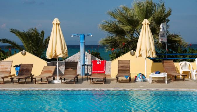 - Зонтики и шезлонги возле бассейна и на пляже - бесплатно