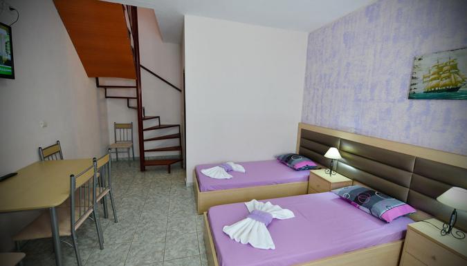 Развитая туристическая инфраструктура: магазины, аптека, три детские площадки, аттракционы, таверны, бары.