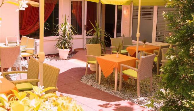 На территории отеля расположены: сад, терраса, бар, ресторан, автостоянка, открытый бассейн и детский бассейн.