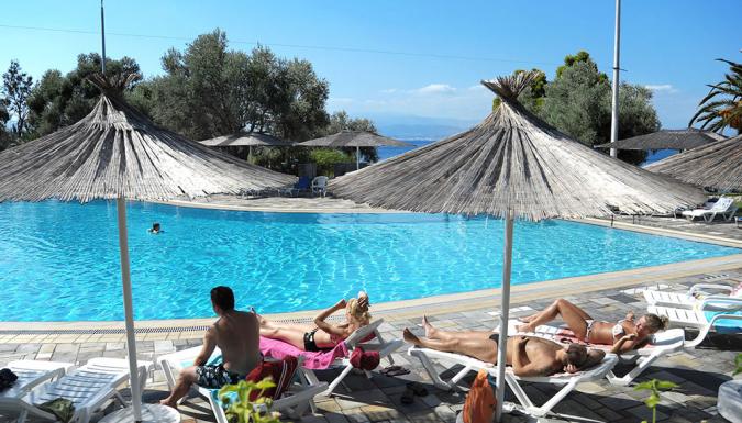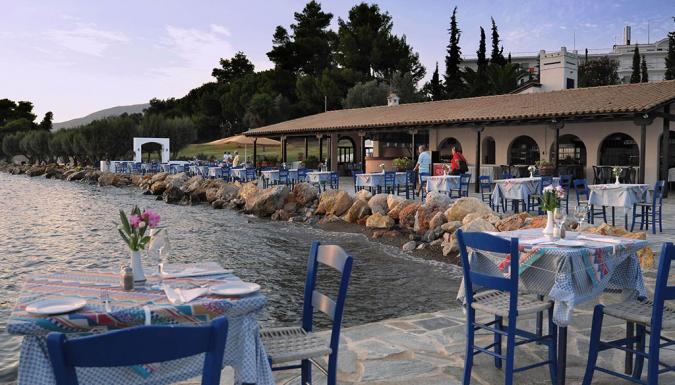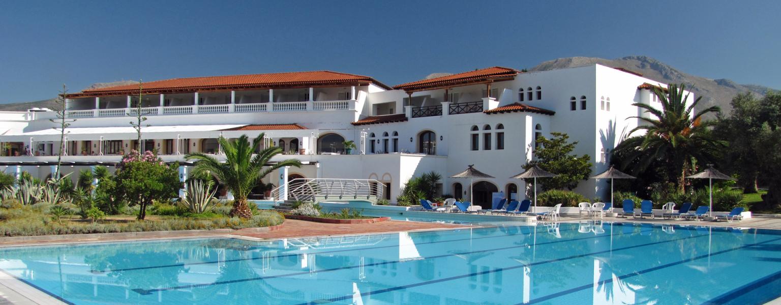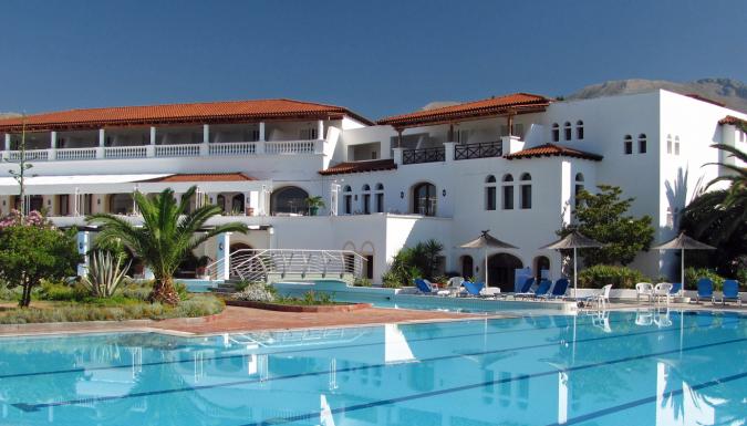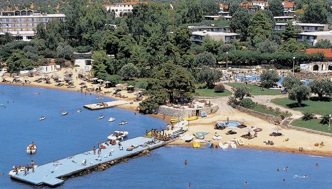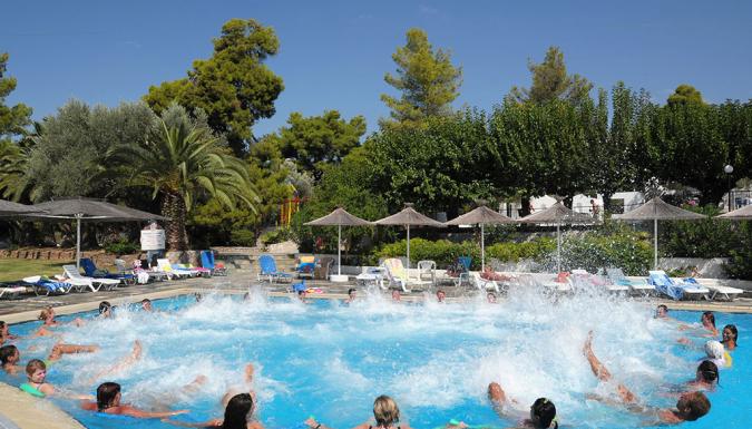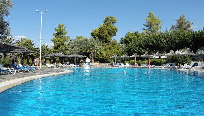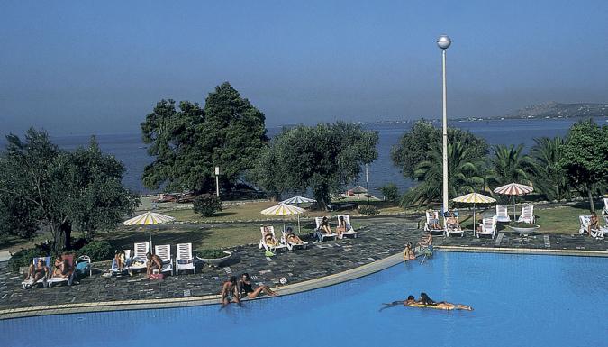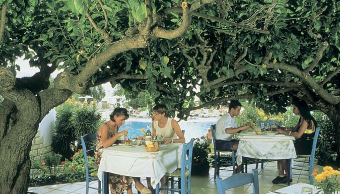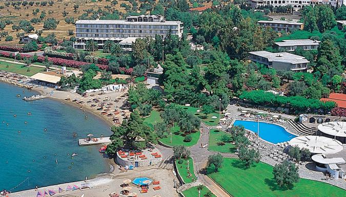 На территории отеля расположены: ресторан (греческая и международная кухня) дискотека,ночной клуб под открытым небом, пункт обмена валюты, детский клуб, услуги няни, открытый плавательный бассейн с морской водой, детская игровая площадка, сейф, частная стоянка, условия для пребывания инвалидов, сад, 5 конференц-залов, 2 теннисных корта, прокат автомобилей, почтовая служба, прачечная, телевизионный зал, амфитеатр, беговая дорожка в парке.