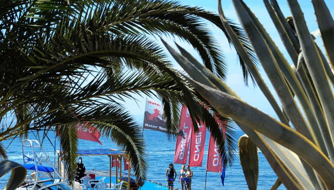 На пляже можно взять в аренду водные лыжи, есть дайвинг-центр