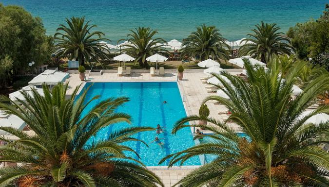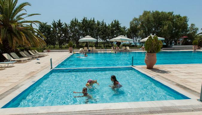 Между двумя полуостровами Кассандра и Ситония, 62 км от аэропорта "Македония", г. Салоники и в 3 км от г. Неа Муданья. На берегу моря. 3rd km National Road of N. Moudania - N. Potidea