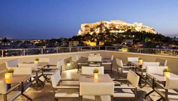 Бар-терраса расположен на крыше отеля с видом на Акрополь