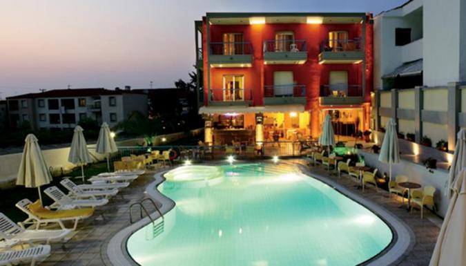 Отель построен на побережье одного из самых больших и популярных пляжей полуострова Халкидики. На территории гостиницы находятся кафе, бар, ресторан и открытый бассейн, прачечная, бар у бассейна.