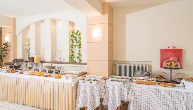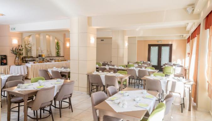 В отеле Regina Mare подается богатый завтрак "шведский стол" и гости могут также выбрать блюда по меню. Блюда греческой и средиземноморской кухни, а также хороший выбор вин, предлагаются гостям в ресторане на ужин. Элегантный бар предлагает широкий выбор напитков и коктейлей в приятной обстановке.