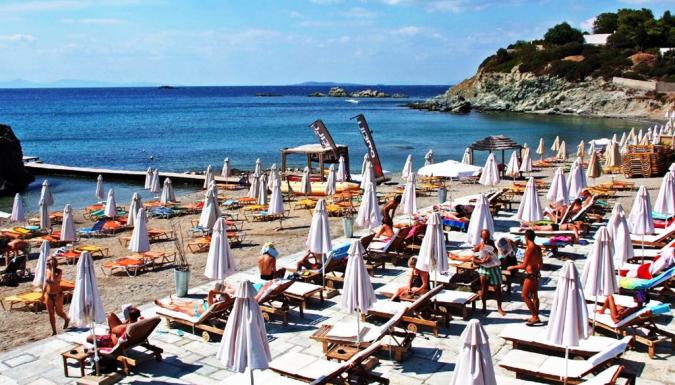 На пляже имеются шезлонги, зонтики и душевые кабины