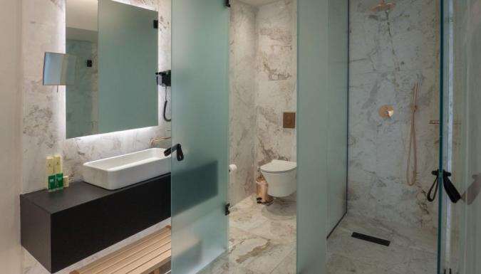 Душ, сейф, телевизор, телефон, кондиционер, фен, холодильник, бесплатные туалетные принадлежности, туалет, тапочки, спутниковые каналы, телевизор с плоским экраном, плиточный/мраморный пол, вид из окна, услуга «звонок-будильник», электрический чайник, шкаф или гардероб, полотенца, белье.