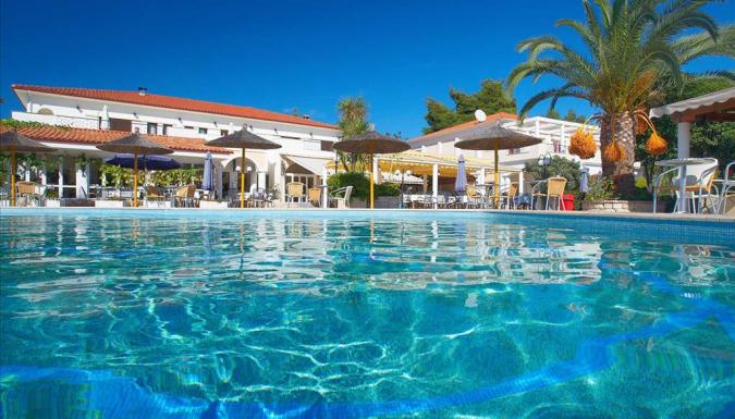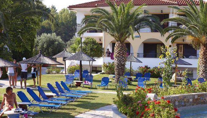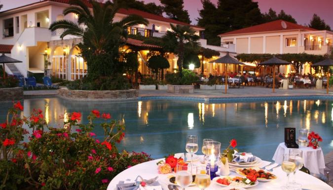Отель находится в кедровой роще, на южной половине полуострова Кассандра. На территории отеля расположены: ресторан, бар, сувенирный магазин, мини-маркет, 2 бассейна с бассейном для детей и 2 бара у бассейнов, теннисный корт.