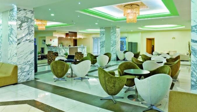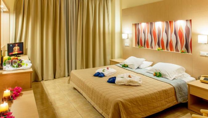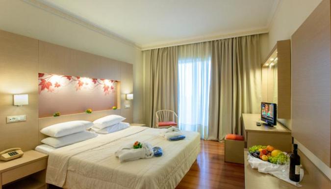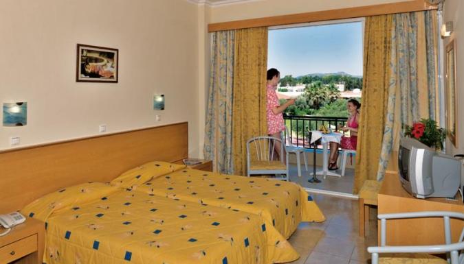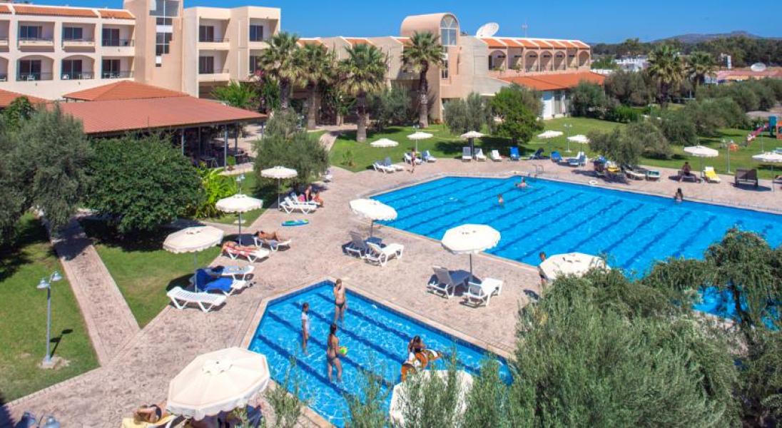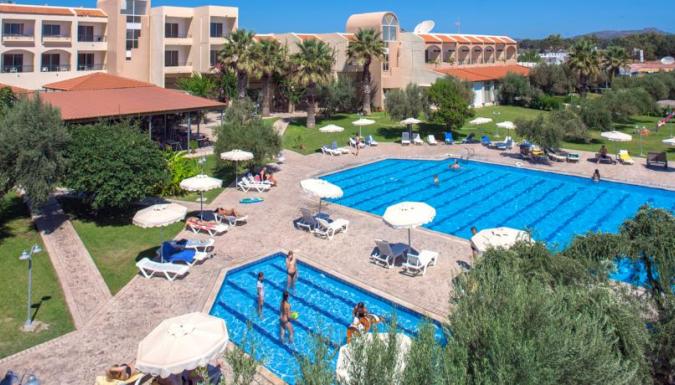 Расположен на берегу моря, в 900 м от центра курорта Колимбия. Питание в отеле по схеме “All Inclusive”, алкогольные напитки местного производства и прохладительные напитки, кофе, чай, булочки, закуски. Для гурманов вечером открыты несколько изысканных ресторанов с греческой и международной кухней. В отеле несколько баров с прохладительными напитками и коктейлями. Для любителей активного образа жизни работает открытый бассейн, детский бассейн. Из спортивных развлечений отель предлагает теннис, настольный теннис, бильярд; можно посетить тренажерный зал. На пляже можно поиграть в волейбол и водное поло, заняться водными видами спорта: покататься на катамаранах, водных лыжах, заняться виндсерфингом. Детей можно оставить на детской площадке или с няней. В отеле проводятся развлекательные программы. Прочие услуги: рецепция, сейф, обмен валют, магазин, стоянка и прокат автомобилей, лаунж, ТВ-зал, интернет.