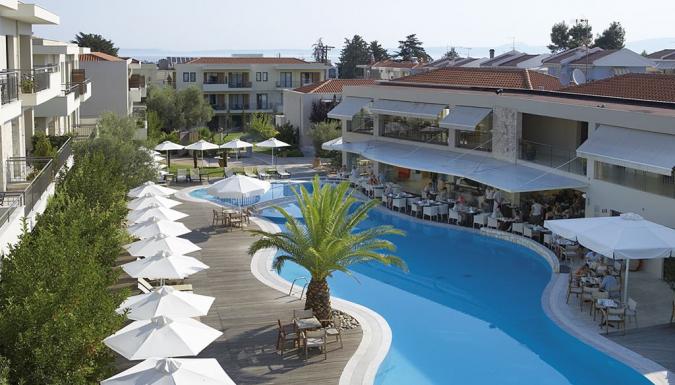 П-в Кассандра, посёлок Ханьоти (в 100 м от центра), в 5 км от Полихроно, в 3 км от Пефкохори, в 90 км от аэропорта «Македония» г. Салоники. Отель состоит из 8 двухэтажных зданий.