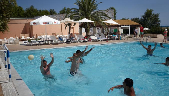 Баскетбол (4 площадки), Волейбол (2 площадки), Мини-футбол, Настольный теннис (ракетки - под залог), Теннисный корт (5 кортов, твердое покрытие, платно), Водное поло (бесплатно), 2 бассейна