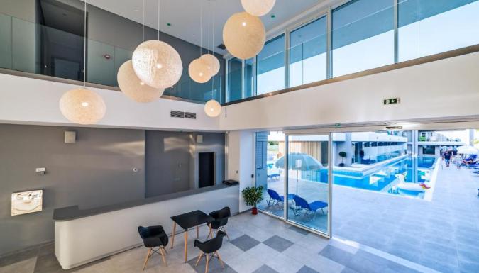 Ежедневно в отеле сервируется завтрак «шведский стол». В ресторане отеля White Olive Premium Лаганаса подают блюда европейской кухни.