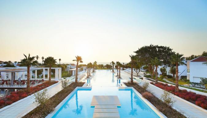 Отель находится прямо на песчано-галечном пляже в местечке Филираки, в трех километрах от центра деревни Филираки и на расстоянии 13 км от города Родос. Автобусная остановка находится рядом с отелем. Среди благоухающих садов расположились главный корпус и бунгало. В отеле: вестибюль со стойкой портье, 5 лифтов, современные комфортабельные салоны для отдыха (с террасой), ресторан, холл и коктейль-бар, телевизионный холл (телевизор имеет спутниковые программы), игровая комната, бар на пляже, сервис в номерах, мини-маркет, ювелирный магазин, парикмахерская, крытый плавательный бассейн с подогреваемой водой, таверна. В саду расположены 4 плавательных бассейна (1 крытый), солнечные террасы. Зонтики и шезлонги у бассейнов и на пляже предоставляются бесплатно. Пляжные полотенца - за отдельную плату. В отеле ежедневно проводятся анимационные программы для взрослых и детей. При отеле есть оздоровительный центр, сауна, хаммам и массаж (за отдельную плату). Также за плату предлагаются различные водные виды спорта: волейбол и прокат велосипедов, расположенных на пляже. Для детей имеются: детский бассейн, игровая площадка, детский клуб в определенные утренние и вечерние часы (принимаются дети в возрасте от 3 до 12 лет). Возможны детские меню, также ранние детские завтраки. Няня - по заказу и за отдельную плату.
