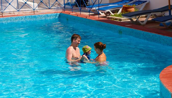 Детское отделение в бассейне, детская игровая площадка, детские стульчики в ресторане, услуги няни по запросу (за доп.плату), детская кроватка