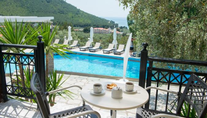 Каждый день в столовой подают завтрак "шведский стол". В традиционном греческом ресторане с панорамным видом на море и зеленый пейзаж города Скала-Рачони можно пообедать и поужинать. В баре можно заказать различные напитки и кофе.