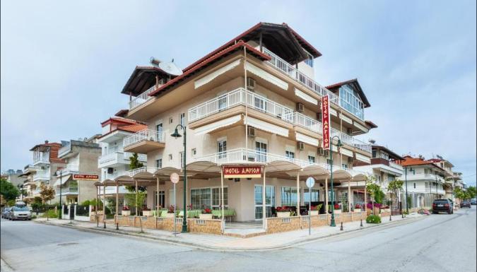 Отель Амфион располагается на олимпийском побережье в Олимпиаки Акти. Имеет 19 просторных и комфортабельных номеров. Всего в 30 метрах от пляжа. Он создан чтобы очаровать тех, кто хочет на самом деле увидеть тихую и привлекательную части Олимпийского пляжа. Продуманый до мельчайших деталей с видом на море и на гору Олимп, построенный в здании с тремя этажами, полностью отремонтирован, с современными стандартными номерами и бесплатным Wi-Fi.