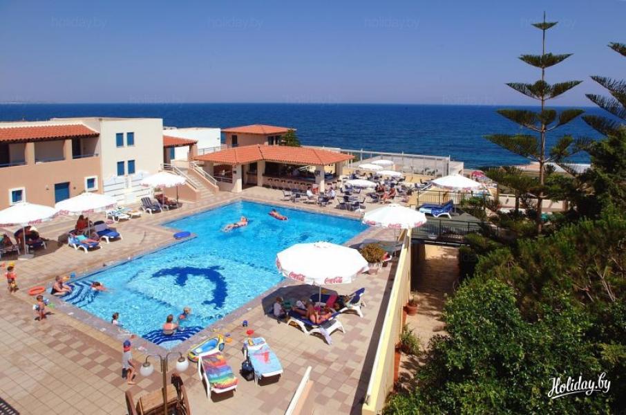 Отель представлен комплексом бунгало с апартаментами и студио. Традиционный кристкий стиль, сад, террасы, бассейны, панорамный вид на море. Просторные номера с оборудованной кухней. Детский мини-клуб Микки Маус, конференц-услуги, Spa-центр, великолепная греческая кухня, спорт и развлечения для взрослых. Отличный отдых как для семьи, так и для молодежи.