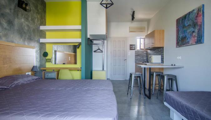 В хорошо оснащенных номерах-студио и апартаментах отеля Nireas обустроена комфортабельная спальная зона и имеется полноценная кухня. Просторный балкон, который есть в любом варианте размещения, идеально подходит для того, чтобы отдохнуть, почитать или выпить чашечку кофе. С балконов открывается вид на бассейн, море или Даратсо.