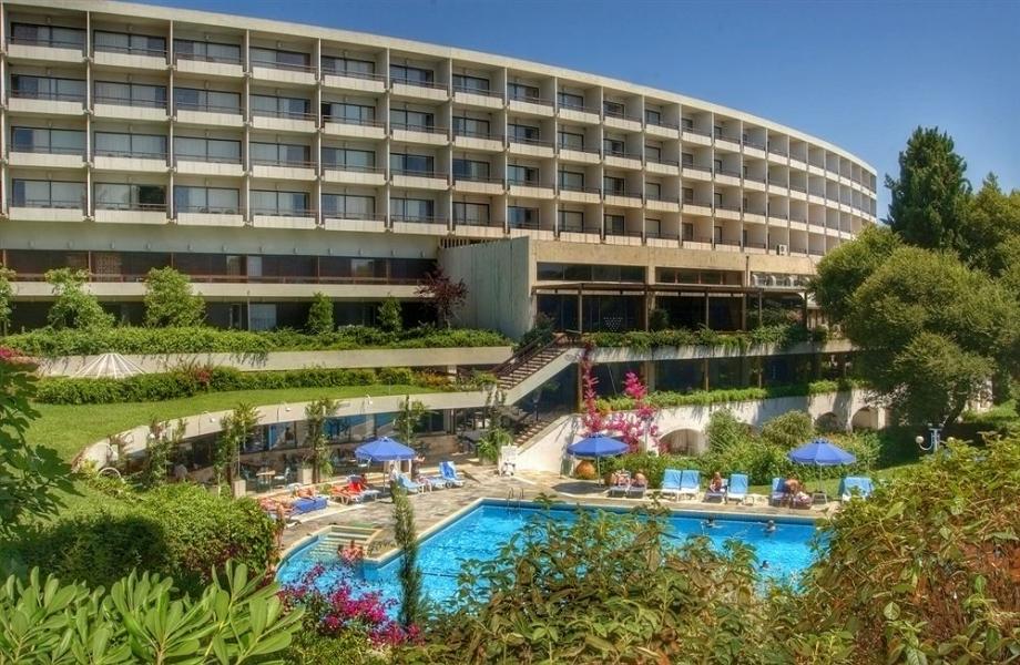 Пятизвездочный отель на возвышенности с видом на Понтикониси и монастырь Влахерна. Предлагает широкий набор услуг. Доступ к пляжу на лифте-фуникулере или по дорожке.