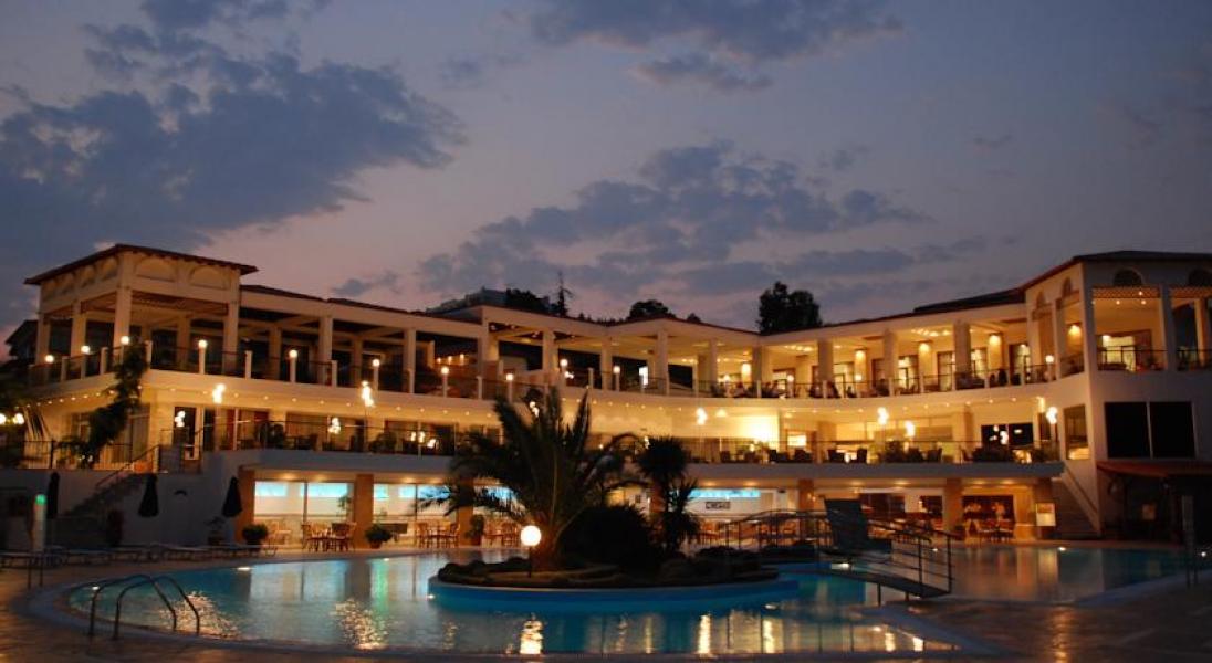 Отель расположен на пышном зеленом склоне в районе Трипити. К услугам гостей — просторные, стильные номера, большой спа-центр с хамамом и сауной, фитнес-зал, частный пляж, теннисный корт, бары и ресторан. Номера и люксы отеля располагают балконом с видом на бассейн, сад или гору Афон. В числе удобств кондиционер и спутниковое телевидение. Для детей работает детский клуб, команда аниматоров, есть детская площадка.