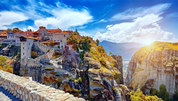 Метеоры – отвесные скалы, на вершинах которых расположены православные монастыри, основанные среди XIV и XV веков. Монастырский комплекс являются уникальным объектом культурного наследия и туристической достопримечательностью. Словно вырастая из горной породы монастыри возвышаются на вершинах скал. Они по праву считаются 8-ым чудом света.