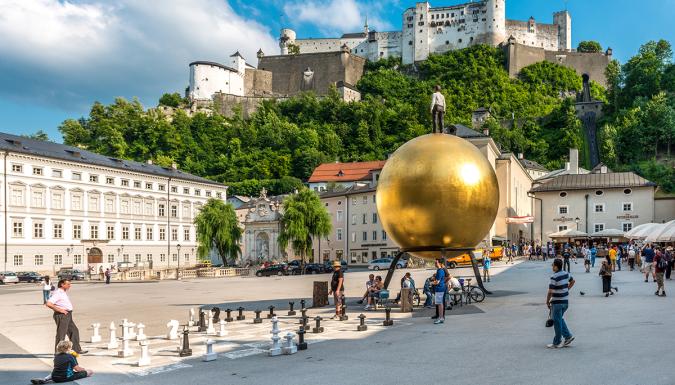 Знакомство с достопримечательностями: замком Хоэнзальцбург, домом-музеем Моцарта, Резиденцией архиепископа, улицей Гетрейдегассе, Колегиенкирхе и др.