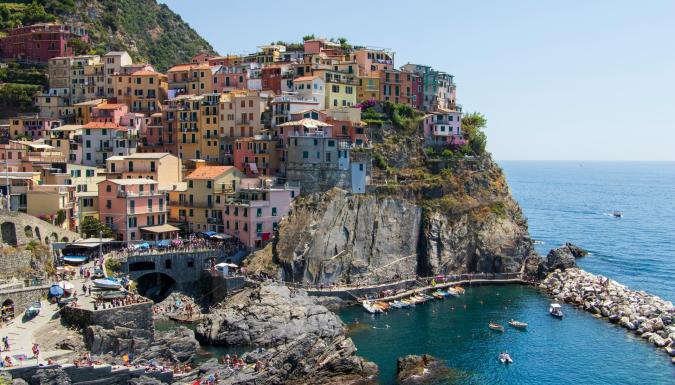 Далее в заповедник Чинкве терре. Место, известно во всем мире, как несколько маленьких средневековых поселений в провинции Ла Специи: Монтероссо, Вернацца, Манаролла и Риомаджоре, считаются мировым достоянием человечества и находятся под охраною ЮНЕСКО. Старинные церквушки, яркая палитра разноцветных домиков, величественные скалы, покрытые виноградниками, яркое солнце и необыкновенно прозрачное синее море, а также известная «тропинка любви», прорубленная в скалистом берегу – составляет неповторимый местный пейзаж.