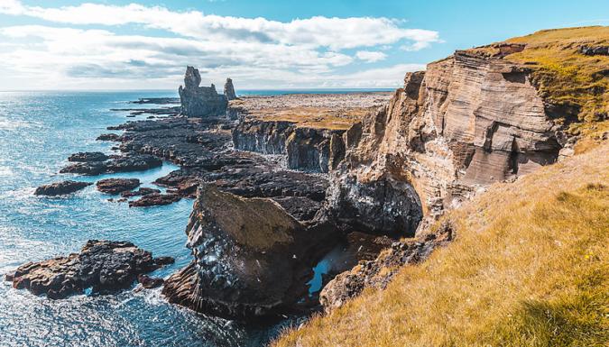 Это секретное убежище расположено у подножия Киркьюфелла на полуострове Снайфелльснес. Вы сможете поближе рассмотреть скалу из лавового камня, стоящую подобно часовому у входа в бухту, Грундарфьордур укрыт за этой конусообразной скалой. В двух шагах от пристани кристально чистые воды, тундра и пляжи переходят в лазурные воды Брейдафьордура. Этот город, усеянный изумрудными лужайками, с его зданиями, которые сливаются с окружающей сельской местностью, несомненно, завоюет ваше расположение. - 3
