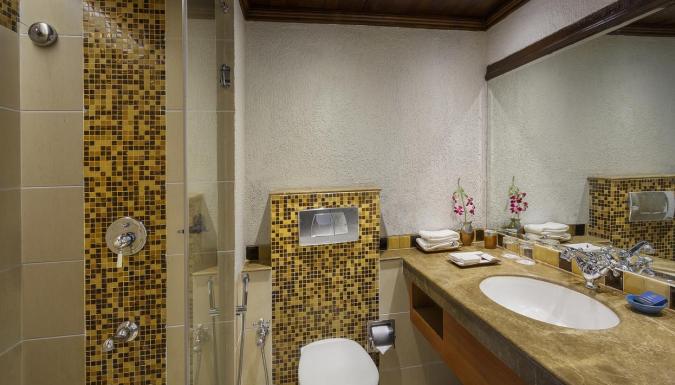 - ванная комната с ванной или душевой кабиной, феном и туалетными принадлежностями.