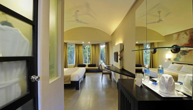 Расположен в пешей доступности от пляжа Кандолим. Расстояние до аэропорта - 40 км, до центра города - 12 км.