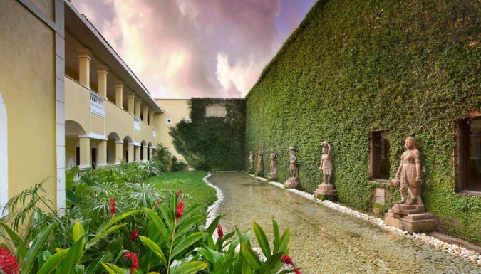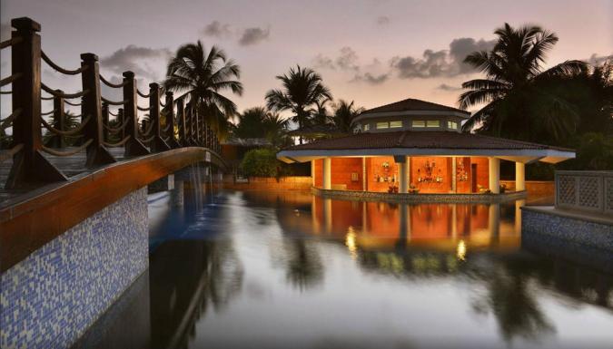 Абсолютно новый отель класса De Luxe на южном побережье Гоа. Этот эксклюзивный отель для тех, кто хочет одтохнуть в далеке от цивилизации и городского шума. Отель окружен горами и пальмовыми рощами. Построен в гоанско- португальском стиле. Всего в отеле 255 номеров. Самые большие в Гоа (от 42м2). В стандартном номере: Кондиционеры, телевизоры, сейф, бар, электрочайник, фен, факс, ванная комната, душевая кабина.5 ресторанов и баров. СПА, бассейны - взрослый и детский, библиотека, тренажерный зал, теннисные корты, салон красоты, широкий спектр водных видов спорта. Бизнес-центры, конференц зал, химчистка, прачечная, такси, обмен валюты, шопинг Аркада. Собственный пляж Радж Бага.