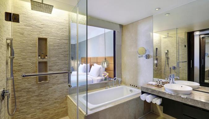 Пятизвездочный курортный отель Pullman Bali Legian Beach расположен в районе пляжа Кута-Бич.