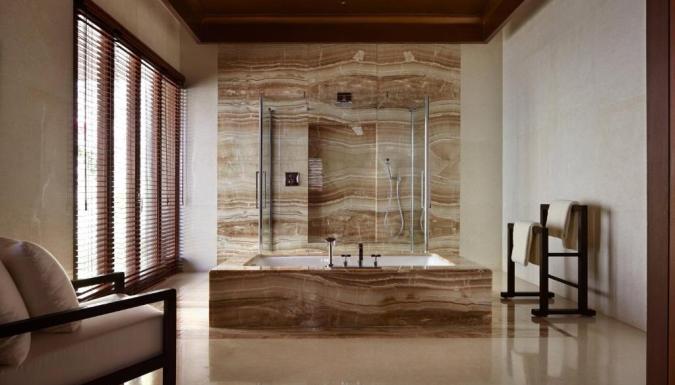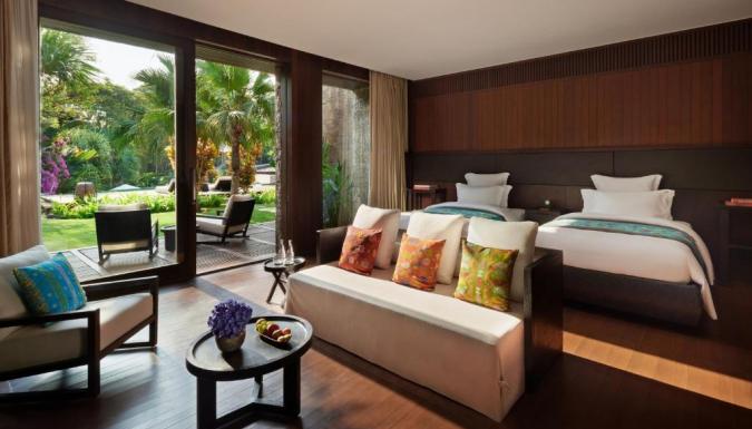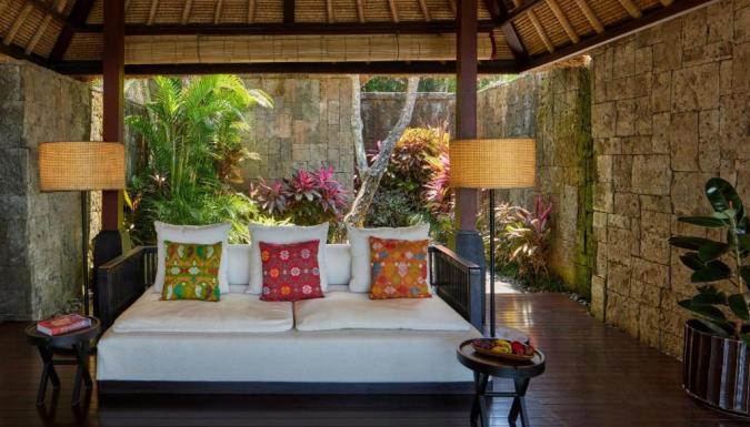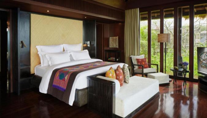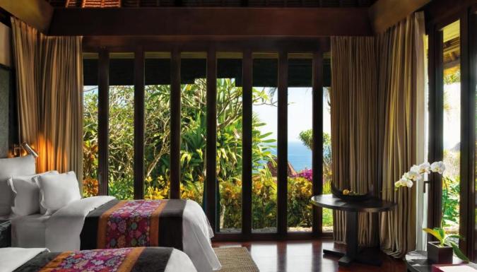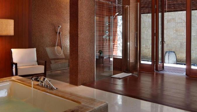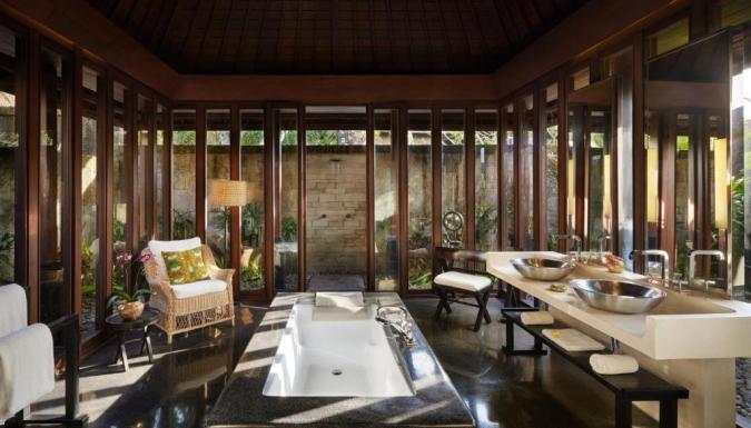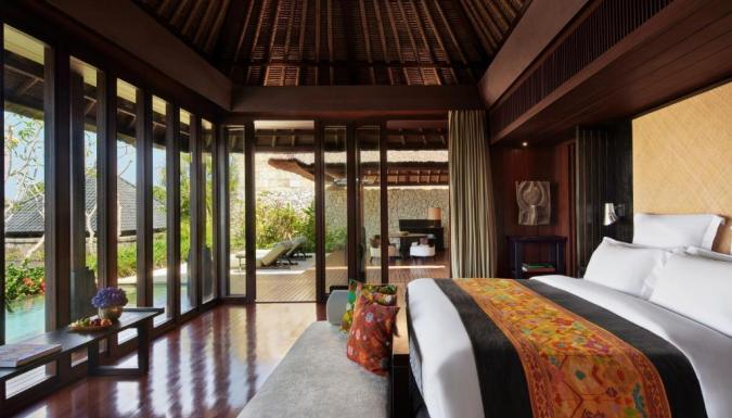 Просторные виллы курорта Bvlgari Resort Bali оформлены в традиционном балийском стиле и оснащены аудиовизуальными системами. Ванные комнаты со стеклянными стенами от пола до потолка выходят на частный двор.