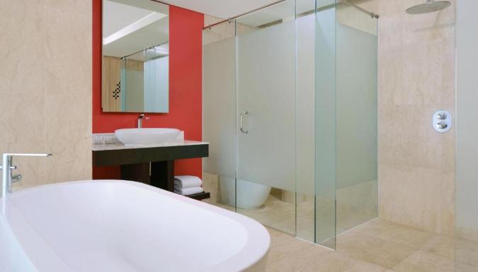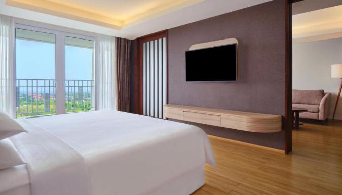 Все номера отеля Four Points by Sheraton Bali, Ungasan красиво оформлены с использованием деревянных акцентов, оснащены кондиционером, телевизором с плоским экраном и кабельными каналами, принадлежностями для чая/кофе и персональным сейфом. В собственной ванной комнате есть душ, фен и бесплатные туалетные принадлежности. Также имеется гостиная зона, а в некоторых номерах есть балкон с видом на бассейн, а из других открывается вид на город.