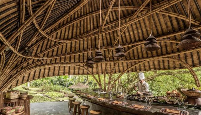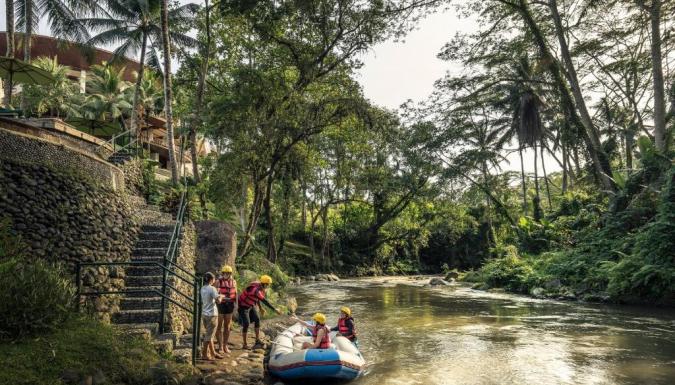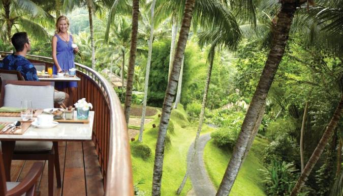 Ресторан Ayung Terrace специализируется на блюдах индонезийской кухни, а в баре Jati подают коктейли и легкие закуски. В кафе Riverside на обед и ужин гостям предложат фирменные блюда западной кухни. Помимо этого, осуществляется доставка еды и напитков в номер.