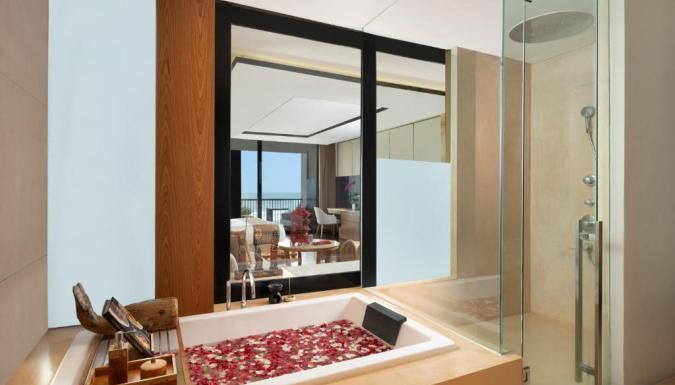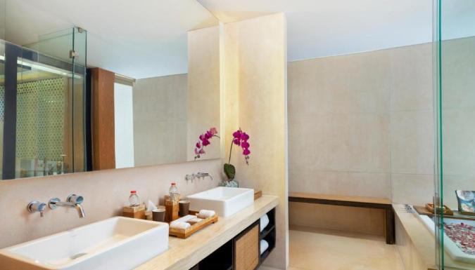 В распоряжении гостей курортного отеля Anantara Seminyak Bali люксы, оформленные в современном стиле, с деревянным полом, телевизором с плоским экраном, собственным балконом и гидромассажной ванной, отделанной плиткой тераццо.