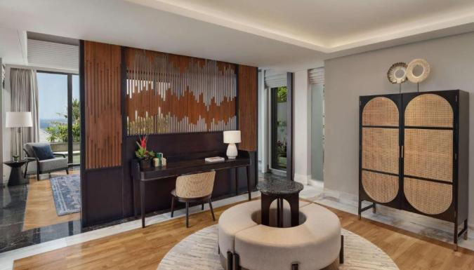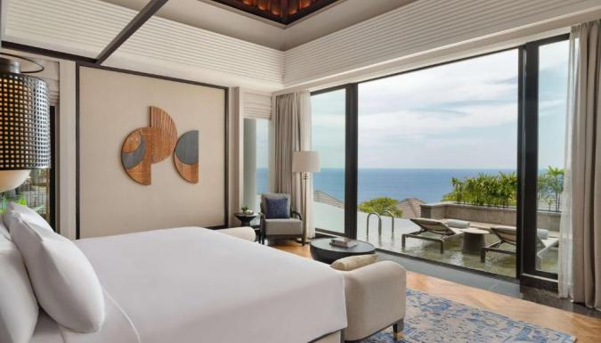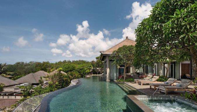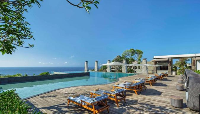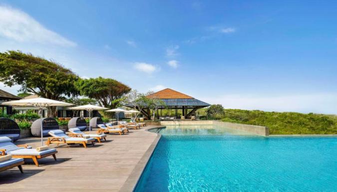 Расположенный на вершине скалы на высоте 70 метров над уровнем моря, роскошный 5-звездочный отель Umana Bali, LXR Hotels & Resort предлагает виллы с собственными бассейнами, гидромассажными ваннами и бесплатным Wi-Fi в Улувату.