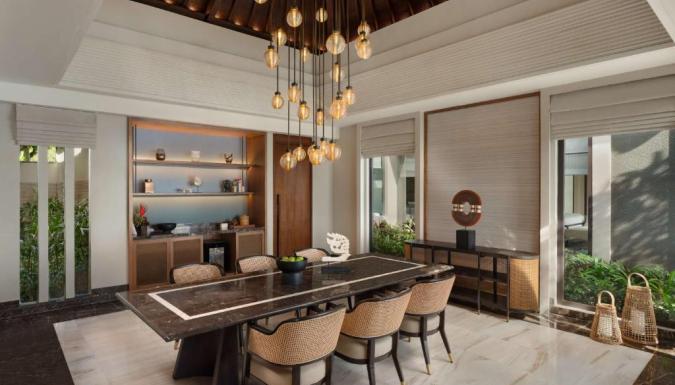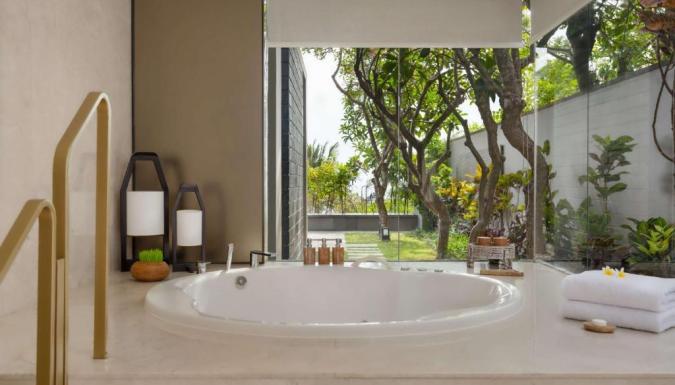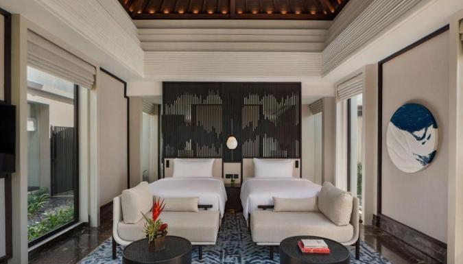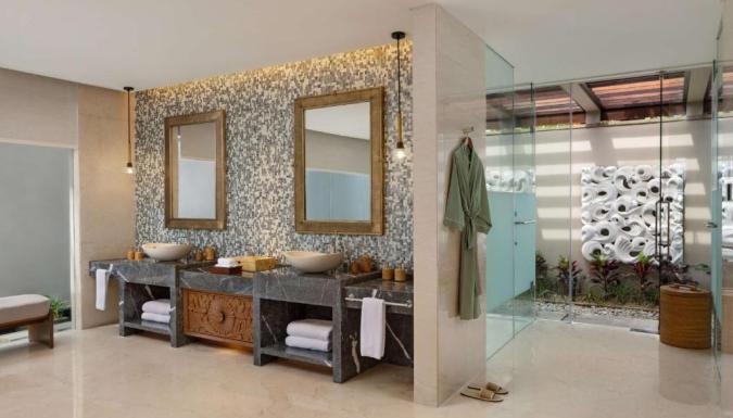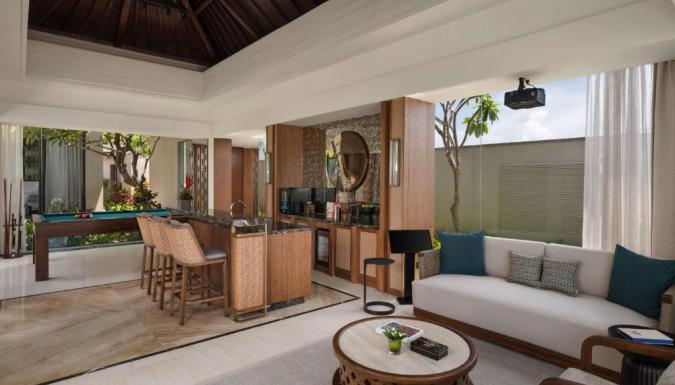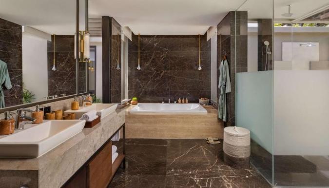 С элегантно оформленными интерьерами, с видом на сад и океан, каждая вилла имеет отдельную гостиную и обеденную зону. В собственной ванной комнате есть мраморная ванна на уровне пола, крытый и открытый тропический душ.